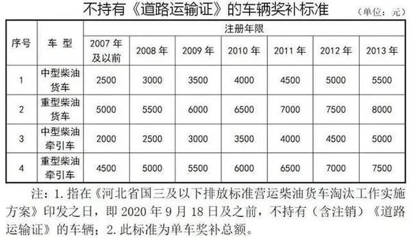 奖补业务受理时间截至2021年5月31日17:00前,逾期不再受理。2021年及以后年度淘汰国三及以下排放标准营运柴油货车将不再给予财政奖补。
